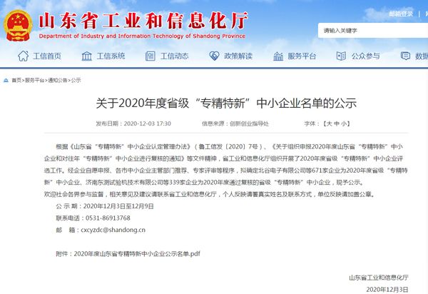 根據(jù)《山東省“專精特新”中小企業(yè)認(rèn)定管理辦法》(魯工信發(fā)〔2020〕7號(hào))、《關(guān)于組織申報(bào)2020年度山東省“專精特新”中小企業(yè)和對(duì)往年“專精特新”中小企業(yè)進(jìn)行復(fù)核的通知》等文件精神,省工業(yè)和信息化廳組織開(kāi)展了2020年度省級(jí)“專精特新”中小企業(yè)評(píng)選工作。經(jīng)主管部門推薦、專家評(píng)審等程序,確定我公司為2020年度省級(jí)“專精特新”中小企業(yè)。